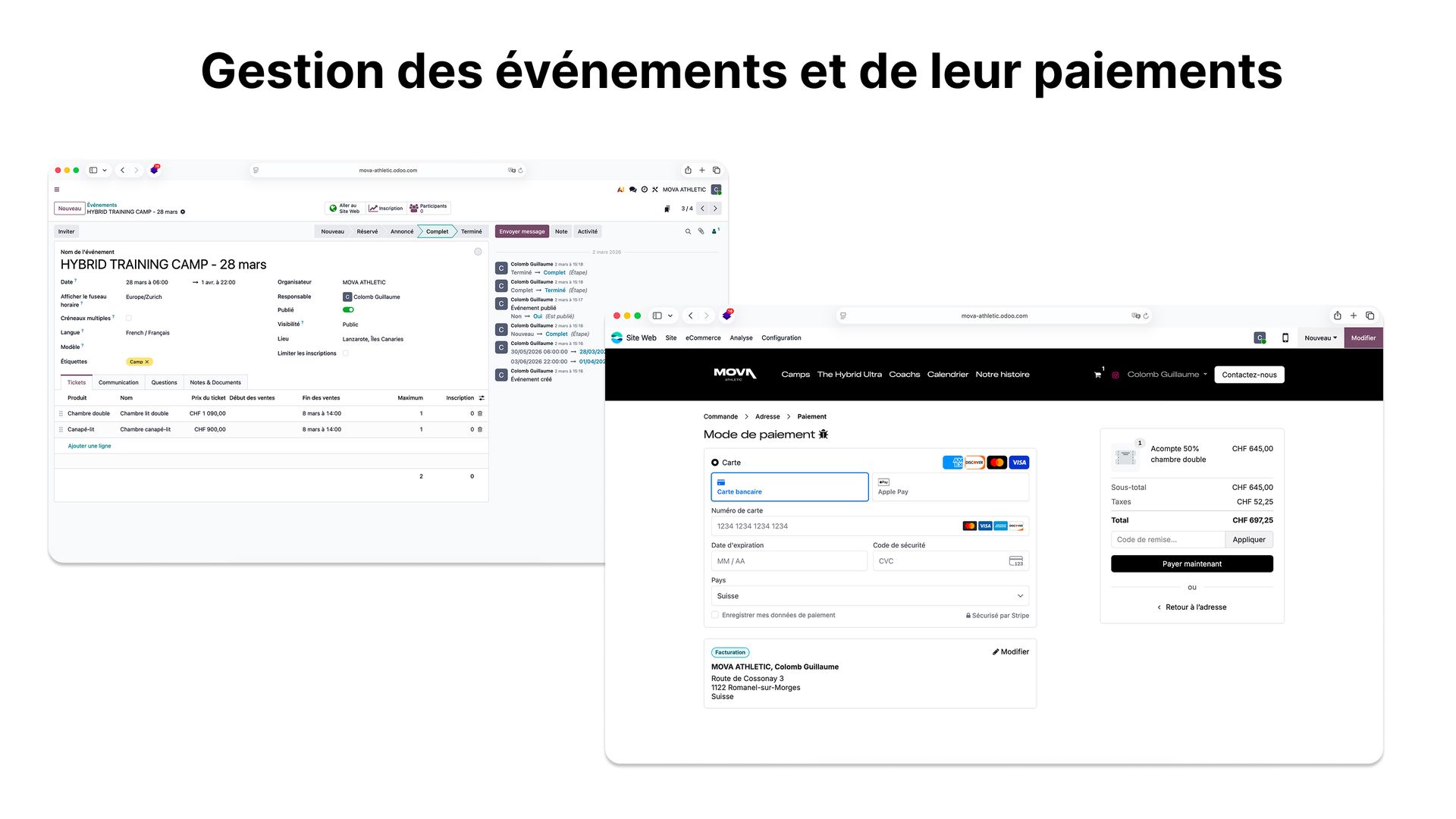 Mova Athletic – Site Odoo + gestion des événements et paiements en ligne