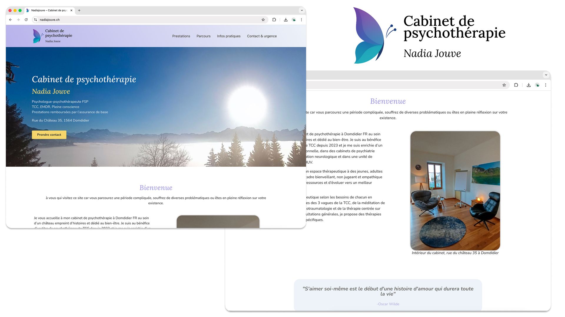 Nadia Jouve – Identité visuelle complète + site web pour cabinet de psychothérapie