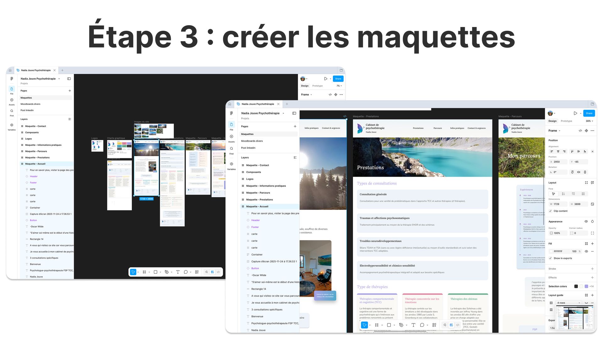 Maquettes sur Figma : deux propositions de chartes graphiques (nettoyage & chauffage), test UX, corrections.